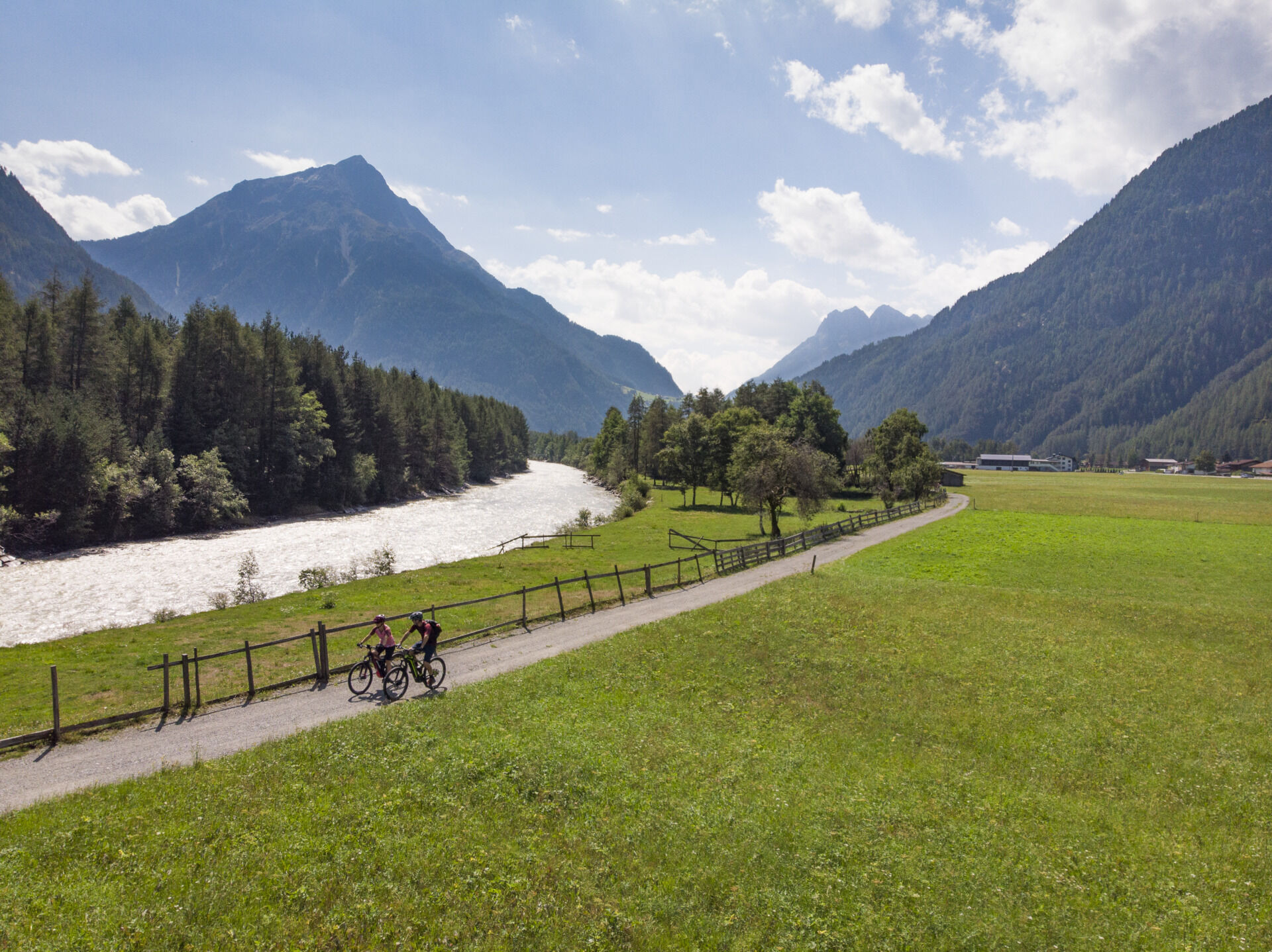 Start ist beim Sportplatz in Längenfeld. Von dort fährt man in Richtung Bundesstraße, biegt aber vorher links ab und radelt vorbei an den Häusern bis zum Kreisverkehr. Hier wählt man die zweite Ausfahrt und folgt der asphaltierten Landesstraße in Richtung Gries. Nach einigen Kurven zweigt links ein Forstweg ab. Durch den Wald verfolgt man den Forstweg und gelangt mit der Zeit zur Aussichtsplattform Adlerblick. Hier genießt man den Ausblick auf Längenfeld, sowie auf die Bergkulisse rund um Längenfeld. Nach einer kurzen Pause setzt man die Tour fort und fährt den Forstweg bergab. Unten im Tal angelangt, verfolgt man den Forstweg weiter bis zur Ortschaft Au. Beim Zebrastreifen muss man die Bundesstraße überqueren und fährt weiter bis man zum Ötztaler Radweg (Nr. 11) gelangt. Am asphaltierten Radweg geht es wieder zurück nach Längenfeld zum Ausgangspunkt.