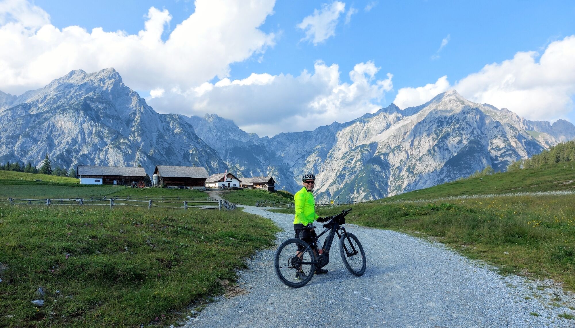 Besondere Vorsicht bei der Auf- bzw. Abfahrt zur und von der Ganalm mit steilem Abhang zum Vomperloch!