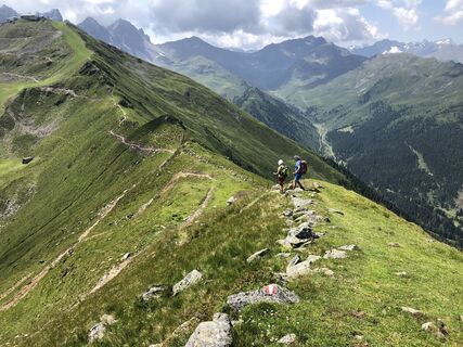 Der Panoramaweg Pleisen eignet sich für die ganze Familie und startet direkt vom Sonnenplateau Hoadl auf 2.340 m. Von der Bergstation Hoadlbahn führt der Weg zunächst nach rechts - unterhalb der Hoadlbahn abwärts bis zu einem Wegweiser. Von dort nach links abzweigen und dem Steig bis zum Pleisenjöchl auf 2.190 m folgen. Nach einem leichten Anstieg erreicht man das Gipfelkreuz Pleisen auf 2.236 m, dann weiter dem Steig folgen bis zum Axamer Kögele auf 2.097 m.
