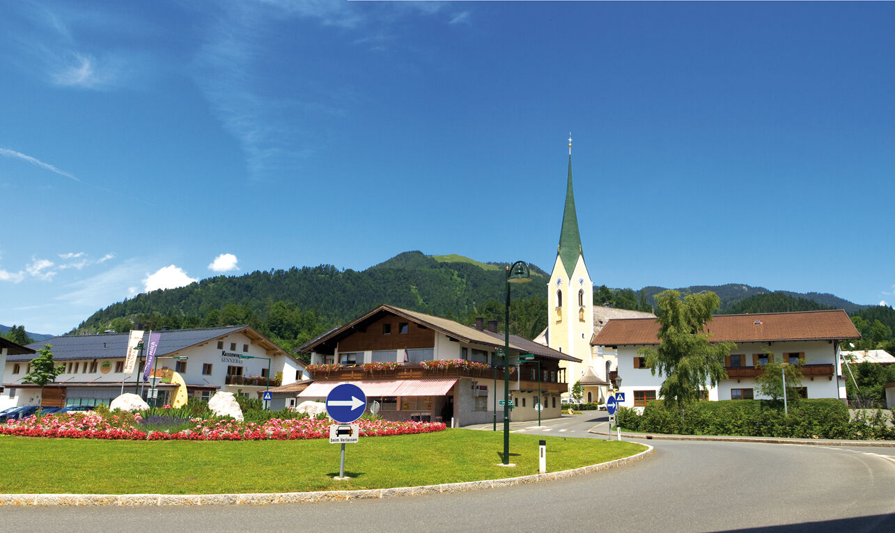 Mit dem Auto nach Kössen zum Veranstaltungszentrum und Infobüro Kaiserwinkl.