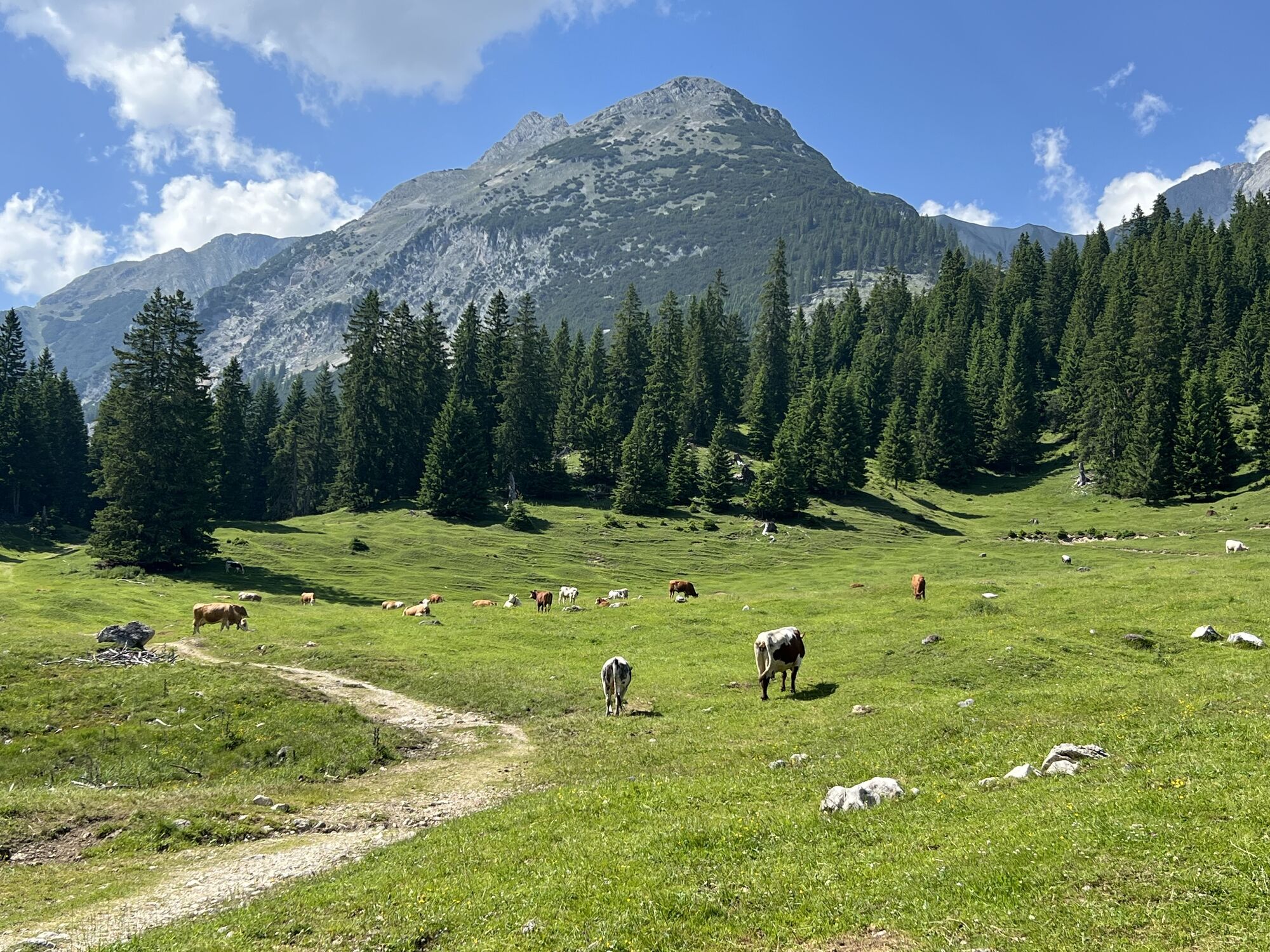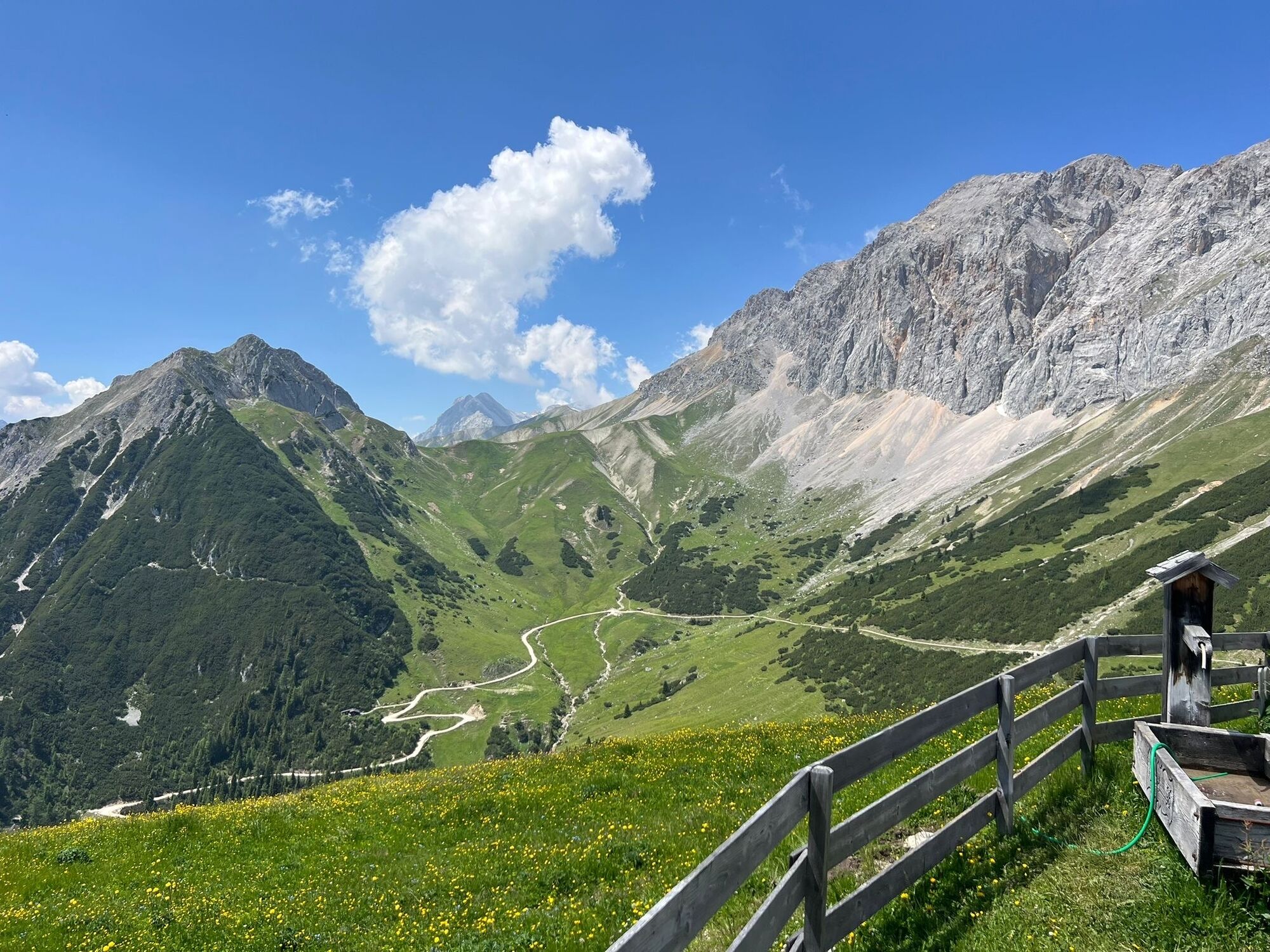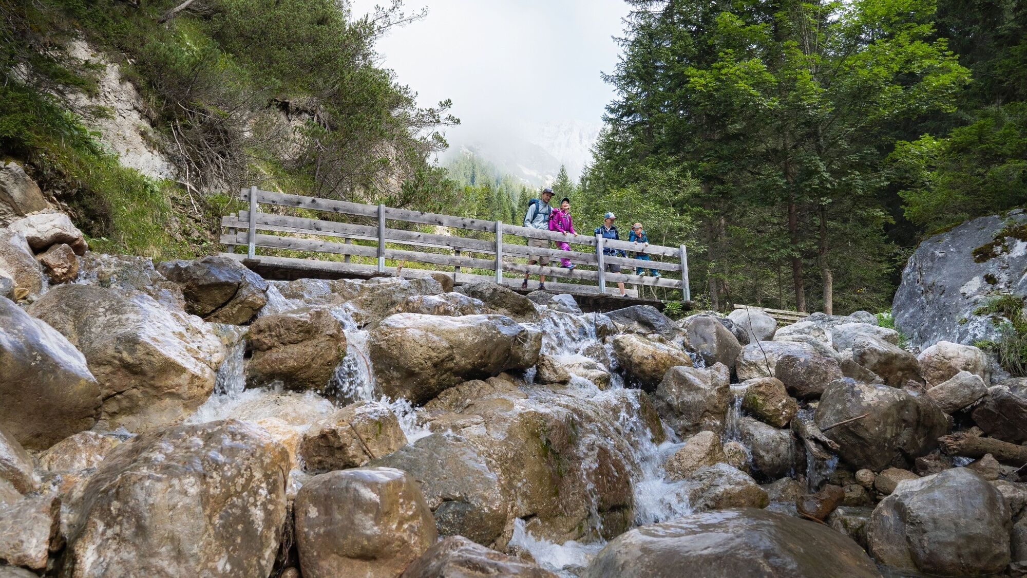 An Tag 3 ist dann bereits der Abstieg angesagt. Hier ist nochmal genügend Zeit um Ausblicke und Eindrücke einzusammeln. Bevor es wieder zurück Richtung Parkplatz oder Bushaltestelle geht, sollte man unbedingt noch eine Einkehr auf der Hämmermoosalm einlegen. Dieses beliebte Wanderziel mit seiner traumhaften Sonnenterrasse wurde 2024 zur Gault&Millau Almhütte des Jahres ausgezeichnet! Nach der letzten Stärkung führt der Weg hinaus durch das Gaistal. Dabei könnt ihr die schönsten Momente der letzten Tage noch einmal aufleben lassen – die beeindruckenden Ausblicke, die kleinen Abenteuer und das Gefühl, gemeinsam etwas Besonderes erlebt zu haben. Zum Abschluss lädt die Kneippanlage Salzbach dazu ein, die wanderfreudigen Füße zu beleben und das Wandererlebnis entspannt ausklingen zu lassen.