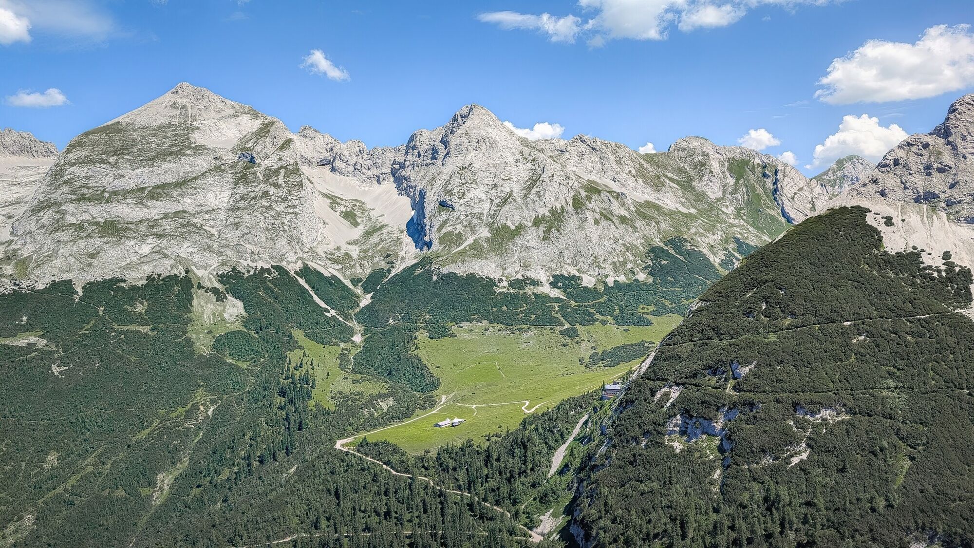 Der Ausgangspunkt der Tour ist die Pleisenhütte – sie liegt 2,5h vom Infozentrum entfernt. Der Zielpunkt der Tour ist das Karwendelhaus, von diesem benötigt man 5h zurück nach Scharnitz.