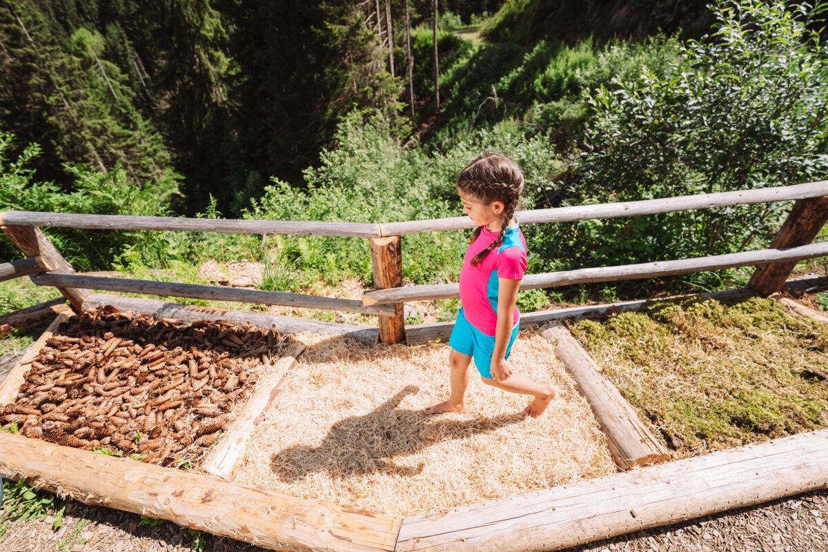 Für Kinderwagen nicht geeignet, wir empfehlen die Nutzung eines Trage-Rucksacks. Teilweise verläuft der Spaziergang im Schatten des Waldes, aber da wir uns in den Bergen befinden, sind bei schönem Wetter ein Sonnenhut und Sonnencreme nötig.
