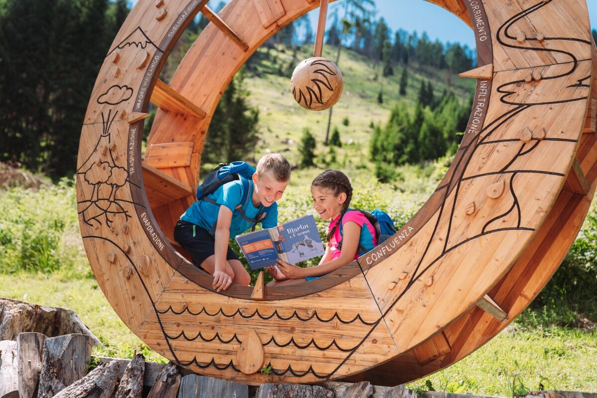 Wähle eines der Spielbücher dieses Pfades, der Protagonist ist Martìn und seine Abenteuer als Hirtenjunge; es gibt auch den Salvanel, der den Wald während des Sturms Vaia rettet; dann erzählt eines die fragile und zarte Welt der Bienen mit Mì. Sie begleiten dich alle auf dem Rundweg des Pfades.