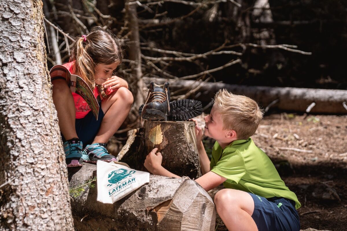 Am Info-Punkt könnt ihr aus 5 Spielbüchern wählen (Preis 6,00 € pro Stück, 2 für 10,00 €), die dazu einladen, die Geheimnisse und das Leben in den Bergen für verschiedene Altersgruppen (Vorschul- und Schulalter) zu entdecken. Es ist ein wunderschöner Spaziergang, mit oder ohne Spielbuch. Doch geleitet von Martìns Geschichten, zwischen Rätseln und Reimen, stillen Dialogen mit dem Großvater und Fragen, auf die es Antworten zu finden gilt, schreitet man fröhlich voran. Am Ende hat jeder die Lichtung und das Objekt gefunden, das ihn zum Lächeln gebracht, zum Nachdenken angeregt und zum Träumen verführt hat. Wie wirkt es, innezuhalten und die Natur unter einer 170 Jahre alten Weißtanne zu beobachten?