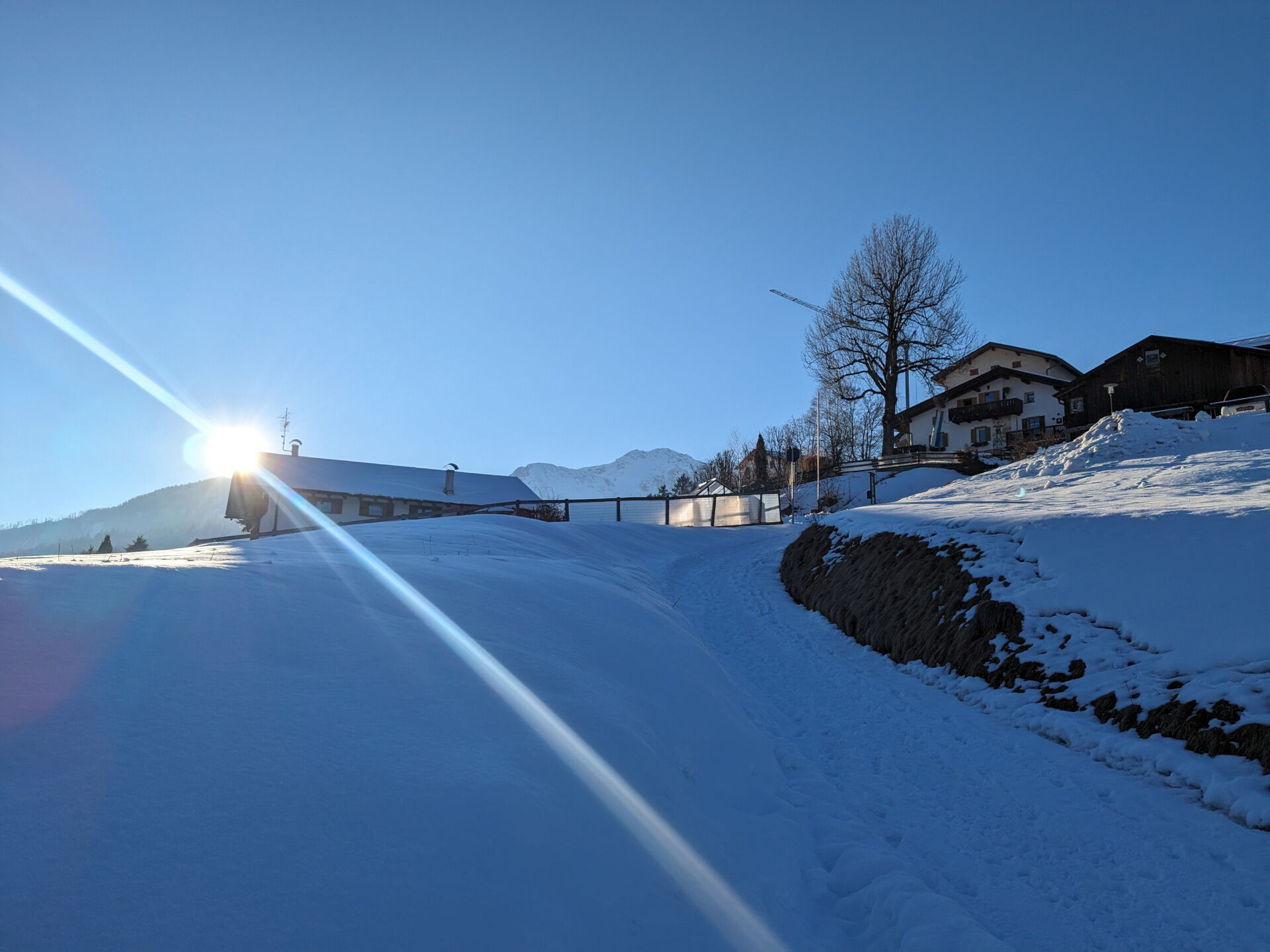 Es wird empfohlen, stets auf die Beschaffenheit des Geländes zu achten, da es möglicherweise eisige und rutschige Abschnitte gibt, insbesondere in schattigen Bereichen.
