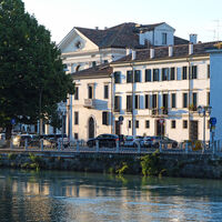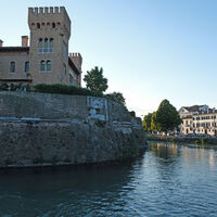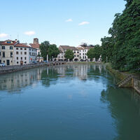 Parcheggio nella zona industriale di Sossano 22m, poi entriamo nel paese e arriviamo su una nuova pista ciclabile (sembra sia la Treviso Ostiglia); passiamo per Longare 34m, rimanendo sulla riva est del Bacchiglione e contornando i Colli Berici, traversiamo la Valdastico e arriviamo a Vicenza Sud dove la ciclabile termina. Allora andiamo verso est su strade trafficate, poi un breve tratto verso sud a Camisano Vicentino, dove pranziamo al Ristorante Ada (pasto completo 14 euro a testa, tutto compreso con ottimi ed enormi piatti con pesce). Proseguiamo ancora verso est attraversando il Ceresone, poi verso sud passiamo per Torre Rossa fino a salire a sinistra lungo la ciclabile per Treviso 33m: il fondo è compatto, lunghi tratti sotto una galleria ombrosa di piante (quasi freddo), attraversiamo il Brenta su uno spettacolare ponte ciclopedonale 34m, poi a sinistra un bel campo di lavanda 22m, passiamo la provinciale, raggiungiamo e attraversiamo la ferrovia a Camposampiero 24m (ottimo gelato e giro in piazza con festa di paese); proseguiamo sempre su ciclabile attraversando il Dese, a Badoere si attraversa lo Zero fino ad entrare nel territorio di Treviso rimanendo vicini al Sile (ora il fondo è fangoso e si rischia di cadere). Arriviamo alla stazione ferroviaria, bella fioritura di fiore della Passione (Passiflora caerulea 11m), entriamo nella vecchia cinta muraria (ancora visibile), raggiungendo il Duomo e scendendo nella conca acquatica alla confluenza fra Sile e Cagnàn. Cerchiamo un B&B e troviamo proprio in zona la Maison Altinia 31m (proprio nell’omonima piazza). Ceniamo nella pittoresca Locanda Ponte Dante 12m (sempre nei paraggi), parcheggiamo la bici in cantina e ci facciamo una bella dormita al B&B.