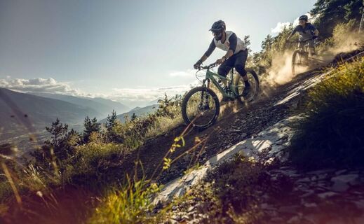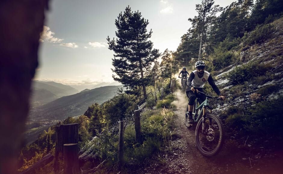 Diese technisch und körperlich mittelschwere Tagestour führt durch die sonnenverwöhnte Region von Crans-Montana und der Leuker Sonnenberge. Es ist eine abwechslungsreiche Strecke, die zu Beginn unterhalb des Petit Mont Bonvin hoch zur idyllischen Alpe von Merdechon und zur Cabane de la Tièche führt. Schon wartet das erste Highlight und zugleich der höchste Punkt der Tour, die Hochebene La Tièche auf knapp 2000 Metern Höhe. Im Sommer sind dort häufig Eringerkühe beim Weiden anzutreffen. Action folgt dann aber nicht im Ring, sondern auf den Trails. Bis hinunter zum Weindorf Varen gilt es, ein Bachbett zu überqueren, schiefer-steinige Passagen, flowige Waldabschnitte sowie hin und wieder einige Rampen zu meistern. Bevor es in Susten Endstation heisst, empfiehlt sich eine kurze Kulturlektion und ein Besuch im Leuker Schloss. Die Glaskuppel, welche vom Stararchitekt Mario Botta entworfen wurde, ist ein krönender Abschluss. Um den Thermalbadeort Leukerbad zu erreichen, nehmen Sie die Buslinie Leuk-Leukerbad. Option: Wenn Sie Ihrem Tag einige Höhenmeter hinzufügen möchten, machen Sie ein paar Abfahrten auf dem Flowtrail von Leukerbad.