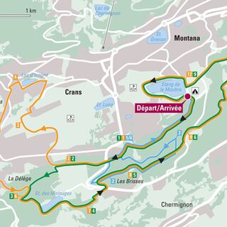 Die kostenlosen Shuttlebusse der Busgesellschaft SMC bedienen das gesamte Resort Crans-Montana. Die Haltestelle, die der Startstelle der Strecke am nächsten liegt, heißt: Lac Moubra.