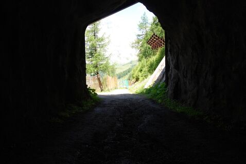 Dies ist die Sommerversion der Talabfahrt im Winter. Von der Bergstation Rinderhütte führt der Weg in grossen Kehren hinunter auf die Höhen der Waldgrenze. Nun geht es durch den kleinen Tunnel, der in...